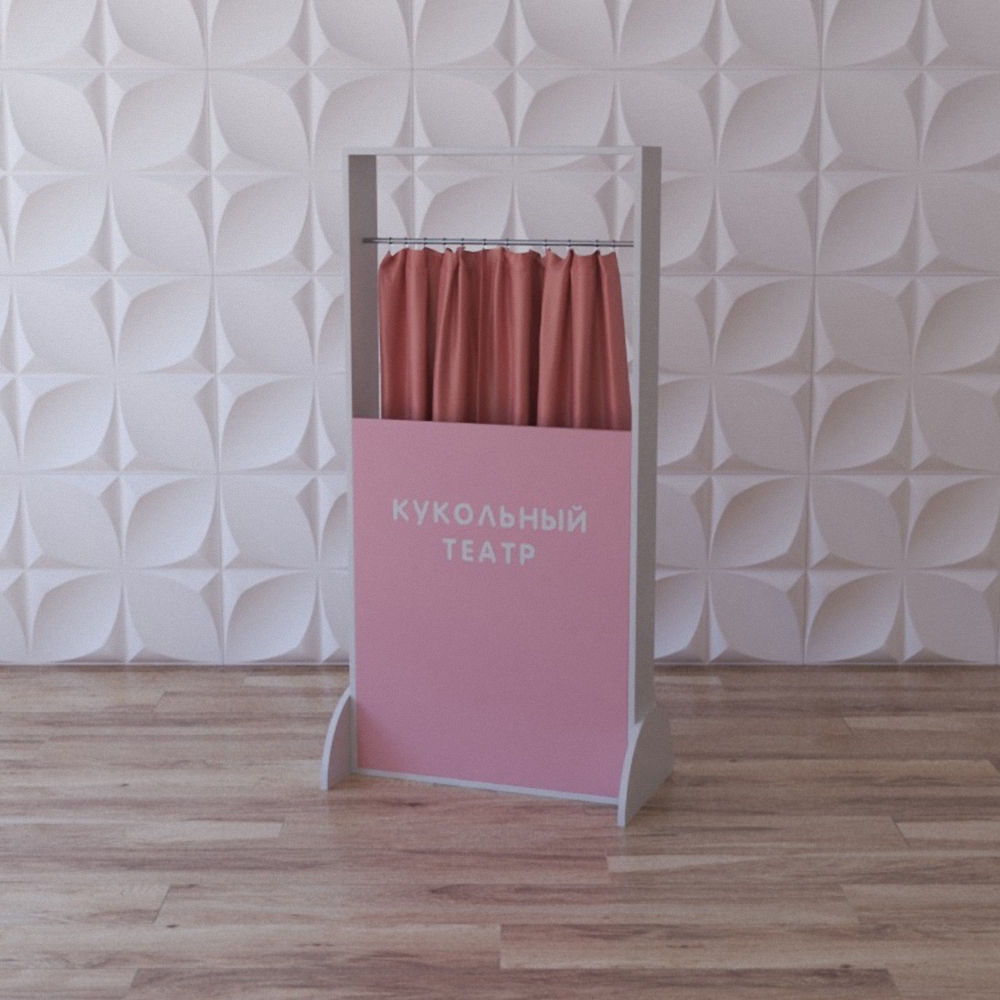 Тактильно-развивающая ширма представленной модели – это игровой модуль для обустройства различных учреждений – детсада, яслей, театральных и творческих кружков для самых маленьких деток (дошкольников),. Выкрашена в розовый цвет, состоит из устойчивой деревянной основы, не имеющей острых краёв и углов, к которой прикреплена штанга для размещения плотной тканевой занавески.