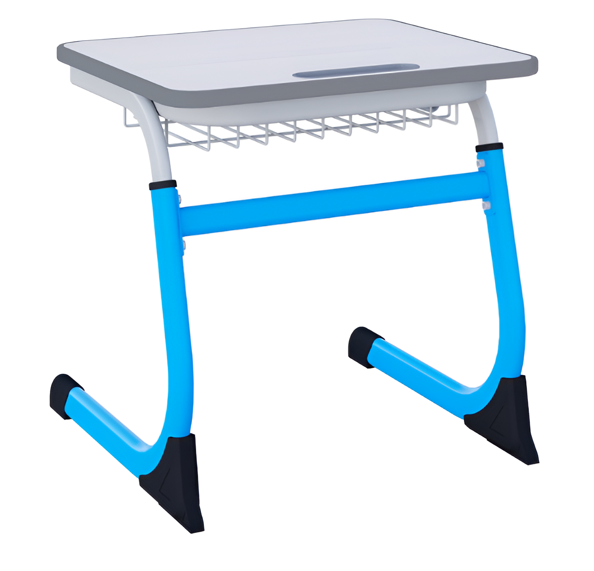 Парта SMARTY одноместная регулируемая по высоте имеет металлическое основание, ЛДСП столешницу со встроенным карманом, крючоч и сетку для принадлежностей.