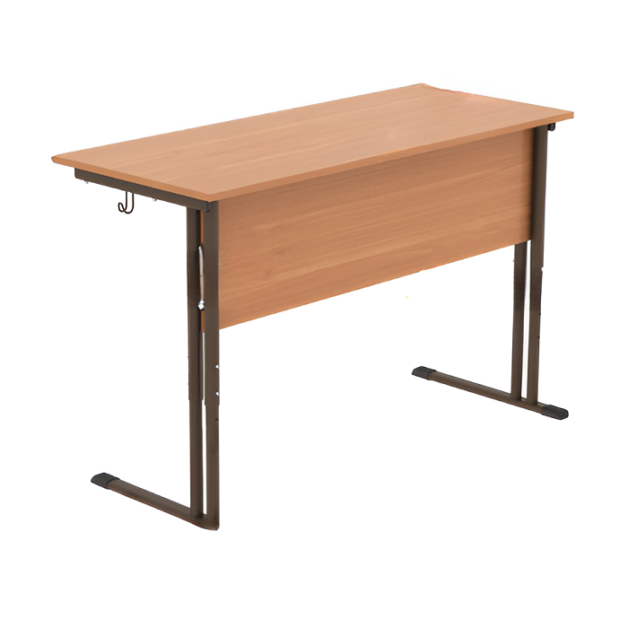 Столешницы кант ПВХ толщиной 1мм противоударный, экран-передняя стенка ЛДСП , размер 1055*250 мм, металлокаркас круглая труба диаметр (28*1,5мм и 32*1,2мм) опора столешницы плоскоовальная труба 30*15*1,5мм, опора (нога) из плоскоовальной трубы 40*20*1,5мм цвета серый, красный, коричневый, зеленый стенка 1,5 мм, порошковополимерная краска ударопрочная. Механизм регулировки телескопическое перемещение труба в трубе с жесткой фиксацией на ростовые группы 4-6, травмобезопасный. Выставляется на три высоты от пола до верхнего края столешницы - 640 мм, 700 мм, 760 мм. Наличие двух крючков для портфелей изготовленых из металлического прутка D4мм .