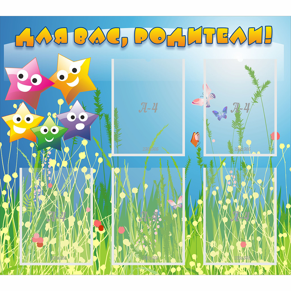 Большой, эффектный и яркий информационный стенд для родителей, буде стопроцентно привлекать внимание и украшать собой все пространство. Каждый детский садик должен иметь подобный стенд, потому что существует большое количество информации для родителей, которую невозможно донести в один момент для всех. Стенд справляется со своей ролью идеально, привлекая внимание, как взрослых, так и детей, он доносит информацию до адресата. К тому же он сделан из качественного и прочного материала, поэтому прослужит долго и надежно. Специальное покрытие защищает краску, его удобно разместить на любой поверхности.