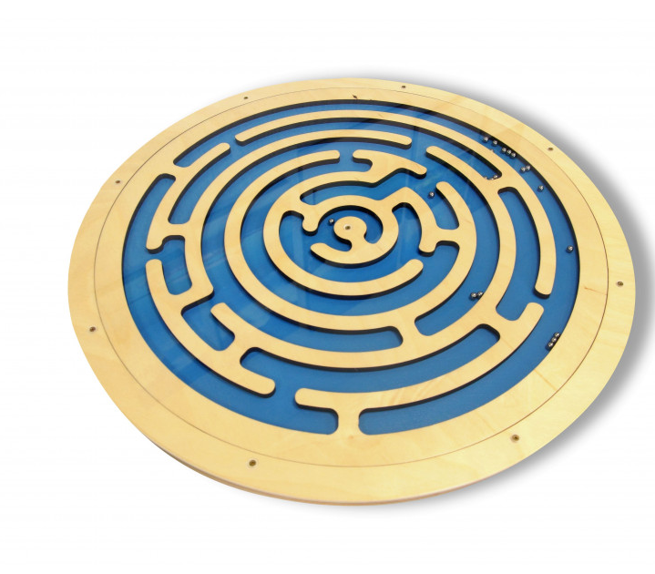 Бизиборд-лабиринт – это игровой модуль, который помогает развивать моторику и логическое мышление у детей от 3-х лет. Основание модуля выполнено из древесины и имеет круглую форму. По всей поверхности основания расположен огромный лабиринт с металлическими шариками, который не только развивает мелкую моторику, но и улучшает координацию движений рук и глаз.