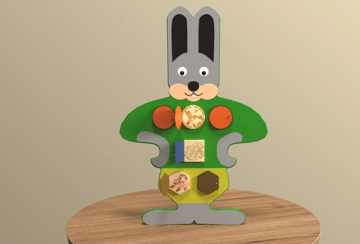 Бизиборд в виде серого заиньки напоминает героя из любимого мультфильма, радуя малыша изо дня в день. Более того, развивающая игра обладает всеми необходимыми навыками, чтобы развивать, вызывать интерес ребенка к занятиям у логопеда, психолога и не только.