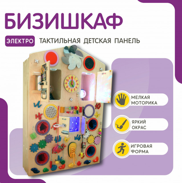 Бизишкаф - это огромная настенная панель, которая позволяет развивать у детей моторику, логику, пространственное мышление и воображение. Этот инновационный продукт подходит как для игры, так и для обучения одного ребенка или группы детей.