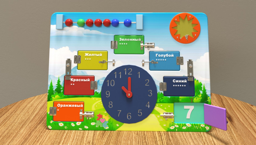 Настенная панель на тему изучения цифр и цветов предназначена для обучения детей названиям цветов, цифрам, порядковому и обратному счёту. Выполнена в форме компактной панели с ярким фоном.