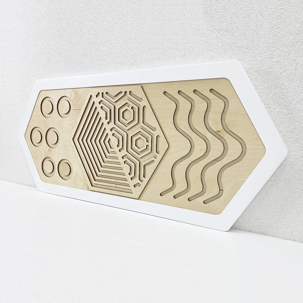 Это декоративные настенные модули, покрытые различными материалами и рельефами, для развития сенсорных систем малышей: зрения, осязания, слуха.