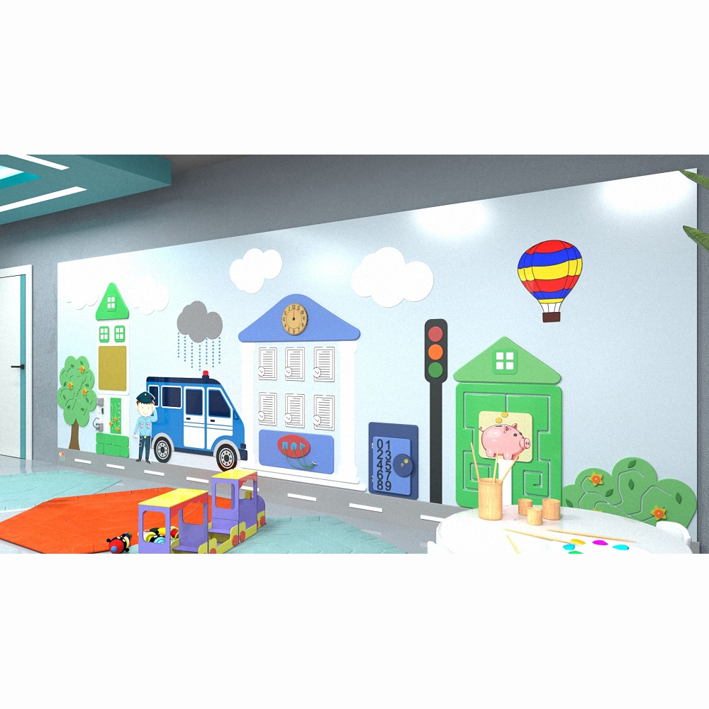 Для чего нужно: настенная панель «Банк» не нуждается в дополнениях и может выступать как самостоятельное оснащение игровой зоны в общественном учреждении (медицинской клинике, банке, кафе, ресторане) благодаря размерам и обилию разнообразных функций.