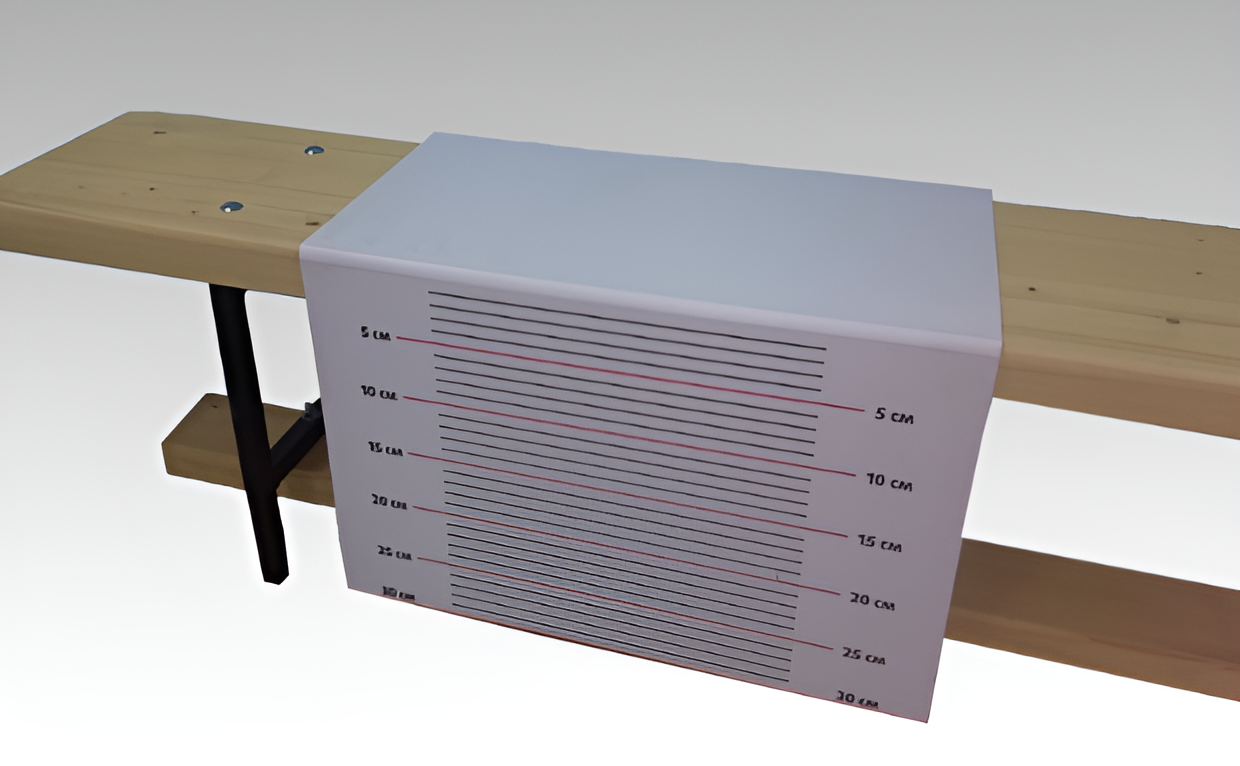 Линейка имеет две поверхности: одну для размещения на скамейке, другую, перпендикулярную ей, для измерения.