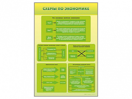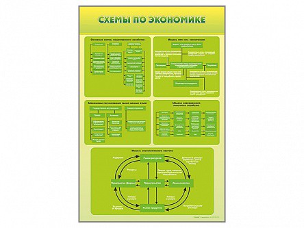Стенды представляют собой панели, на которых размещены схемы по экономике.