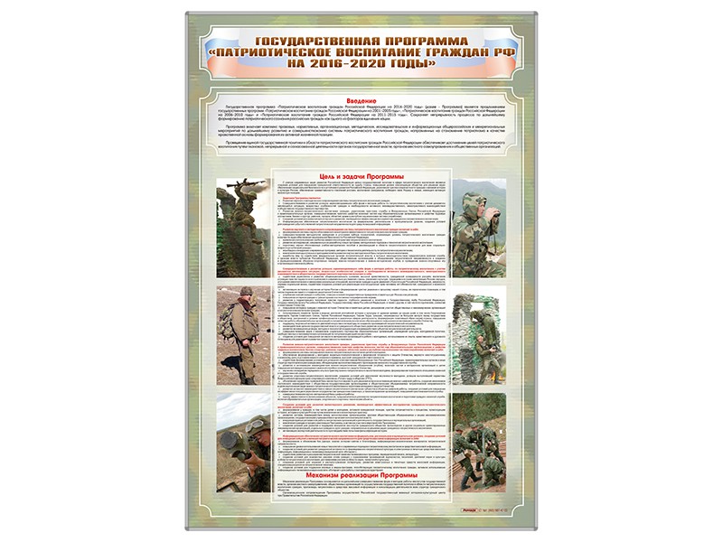 Стенд "Государственная программа "Патриотическое воспитание граждан РФ на 2016-2020 годы."