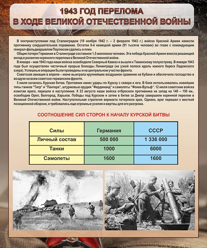 Стенд "1943 год перелома в ходе Великой Отечественной войны"