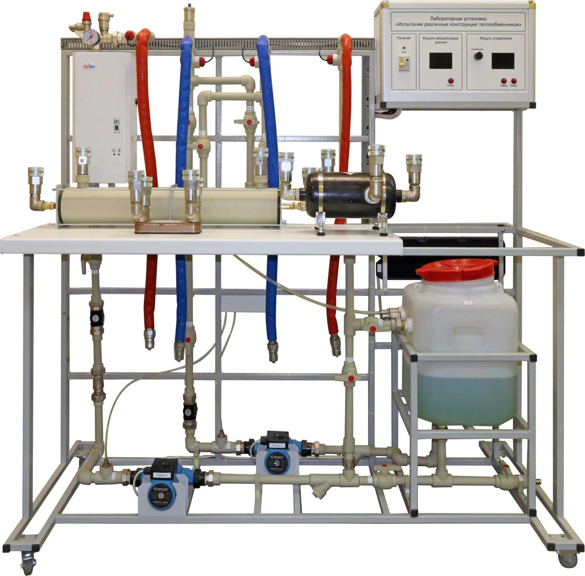 Лабораторная установка «Испытание различных конструкций теплообменника» предназначена для проведения лабораторных работ по курсу «Теплотехника» в системе среднего и высшего профессионального образования.
