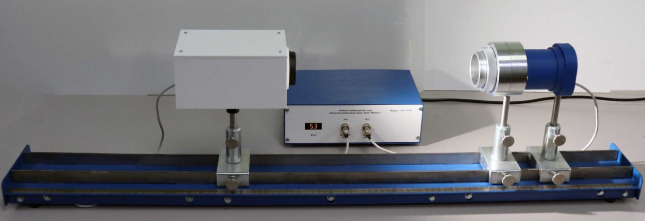Лабораторная установка "Изучение поляризации света" предназначена для изучения поляризации света и методов получения плоскополяризованного света; исследования зависимости интенсивности плоско поляризованного света от угла между плоскостью колебаний и плоскостью поляризатора.