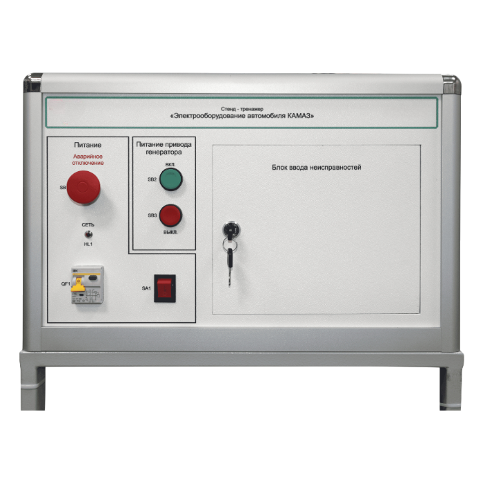 На панели управления размещён блок ввода неисправностей, позволяющий имитировать 25 неисправностей электрооборудования автомобиля КамАЗ.