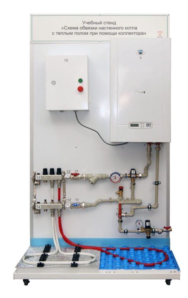 Учебный стенд «Схема обвязки настенного котла с теплым полом при помощи коллектора»