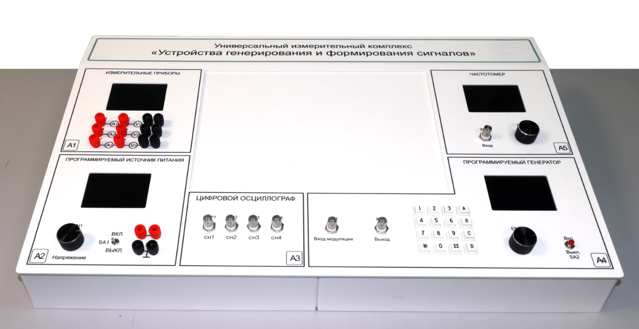 Главная Каталог Учебно-лабораторные комплексы Универсальный измерительный комплекс с набором сменных панелей «Устройства генерирования и формирования сигналов»